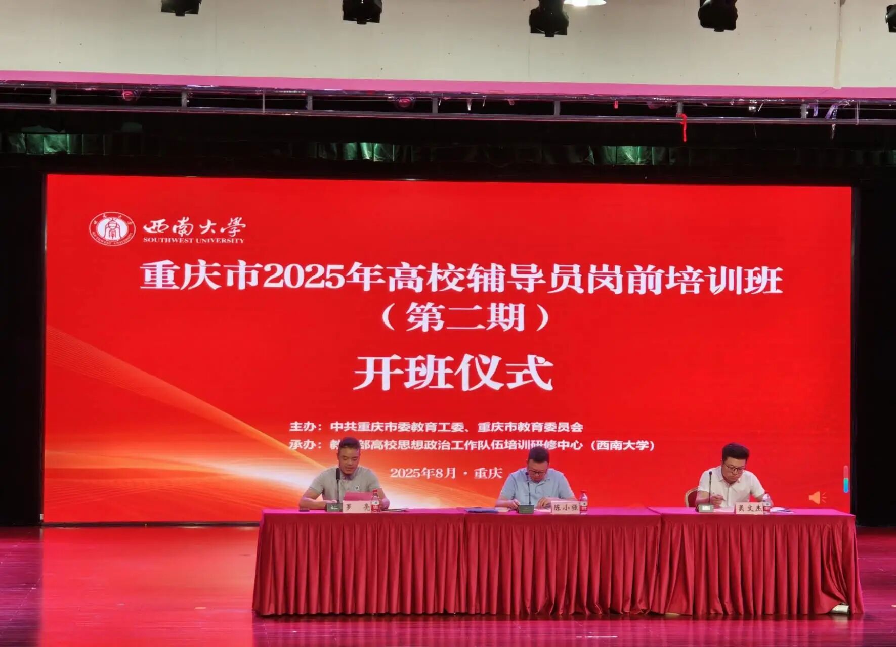 为深入学习贯彻习近平新时代中国特色社会主义思想,全面落实党的二十大和二十届二中、三中全会精神,不断提升新时代辅导员队伍的职业能力和专业素养,扎实做好大学生思想政治教育工作。2025年8月25日至8月29日,重庆城市科技学院组织46名辅导员赴西南大学,参加由中共重庆市委教育工委、重庆市教育委员会主办,教育部高校思想政治工作队伍培训研修中心(西南大学)承办的重庆市2025年高校辅导员岗前培训班。 本次培训聚焦高校辅导员工作实际需求,邀请多位领域内专家学者开展专题授课,为参训辅导员带来内容丰富、形式多样的培训课程。西南科技大学副处级专职辅导员辛婷、云南大学马克思主义学院副院长朱丹、重庆市公安局韩小满、西南大学教师发展中心主任叶海燕、重庆大学教授蒲清平、西南政法大学二级教授简敏、西南大学马克思主义学院副教授李心悦等专家,结合自身实践经验与研究成果,围绕多方面核心内容展开深入讲解。培训内容既涵盖高校辅导员岗位职责与能力要求、职业规划与发展指导、工作技巧与方法创新等基础能力模块,也包含大学生思想政治教育基本理论、心理健康教育、网络思想政治教育、学生突发事件应急处置等实践应用内容,同时针对人工智能时代大学生思想政治教育方式方法创新、筑牢意识形态安全防线等重点难点问题进行专项指导,有效充实了辅导员理论知识储备,增强了辅导员解决学生工作实际问题的能力。 通过五天的系统学习与深入交流,我校参训辅导员进一步夯实了理论根基、拓宽了工作视野、提升了专业能力。参训辅导员纷纷表示,将以此次培训为新起点,把所学所悟转化为立德树人的具体行动,全身心投入大学生思想政治教育与学生管理服务工作,切实为学生成长成才保驾护航。未来,我校将持续把专业化培训作为队伍建设的核心抓手,不断完善辅导员成长发展机制,以高素质育人队伍支撑高质量教育发展,为培养担当民族复兴大任的时代新人贡献更大力量。